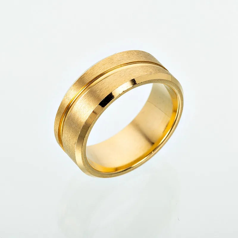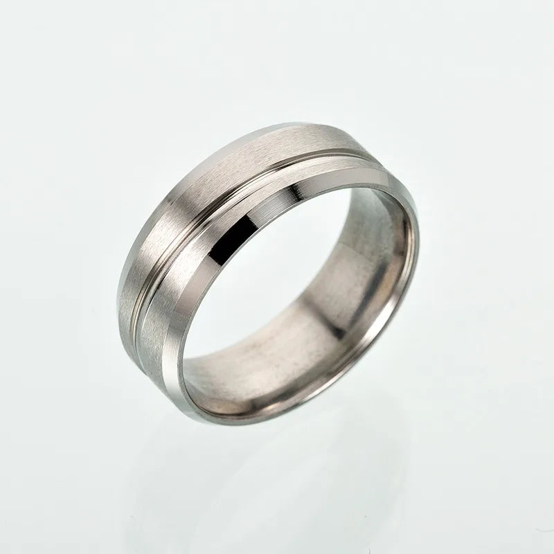 This 8mm stainless steel band features a smooth electroplated finish that delivers high shine and lasting durability. Designed with a minimalist geometric shape, it’s ideal as a wedding band or a fashionable everyday accessory for lovers.