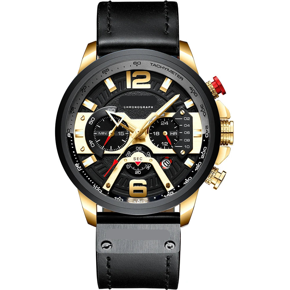 Designed for the modern man, this Military Chronograph Watch combines tactical durability with refined sophistication. Featuring a bold 48mm dial, chronograph functionality, and genuine leather strap, it's built for both style and performance.